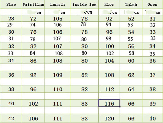 Size: 28, 29, 30, 31, 32, 33, 34, 36, 38, 40, 42
